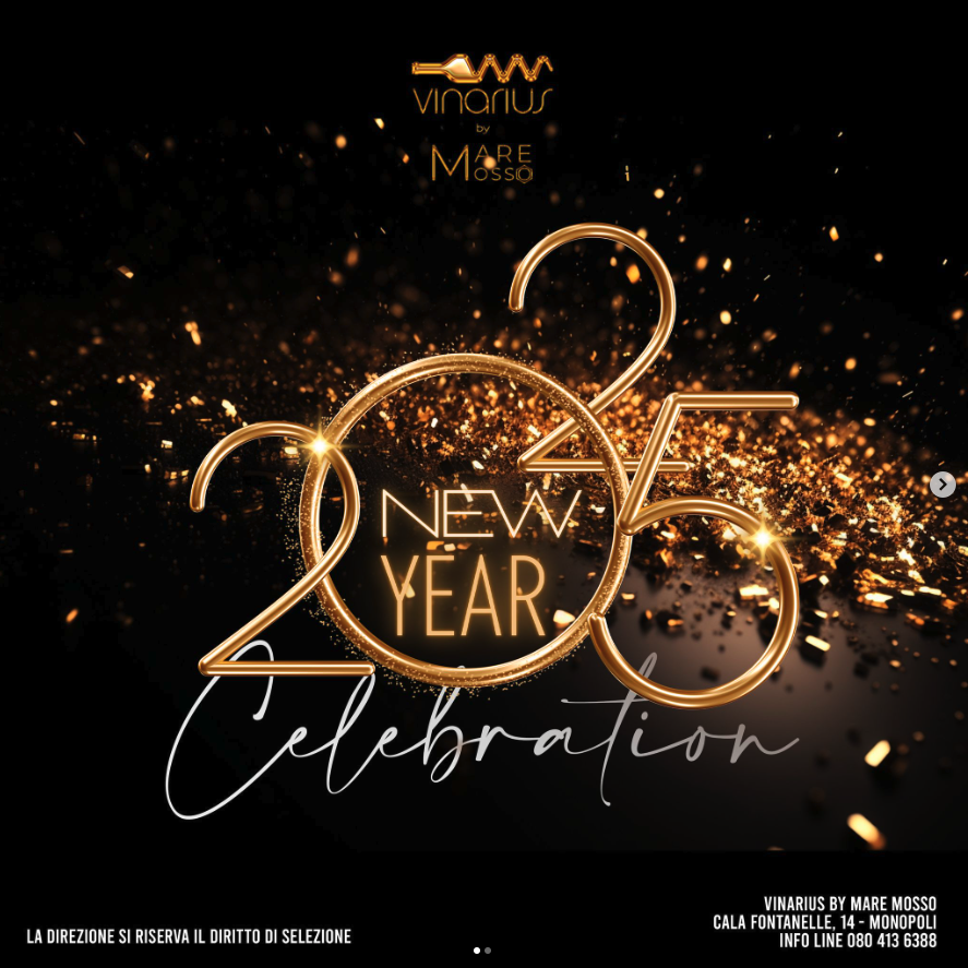 Unisciti a noi per una serata indimenticabile, tra vini pregiati, delizie culinarie e un’atmosfera magica. Brinda al nuovo anno con stile e goditi un’esperienza unica nel cuore di Monopoli. Prenota ora il tuo posto e preparati a vivere una notte di pura eleganza e divertimento!